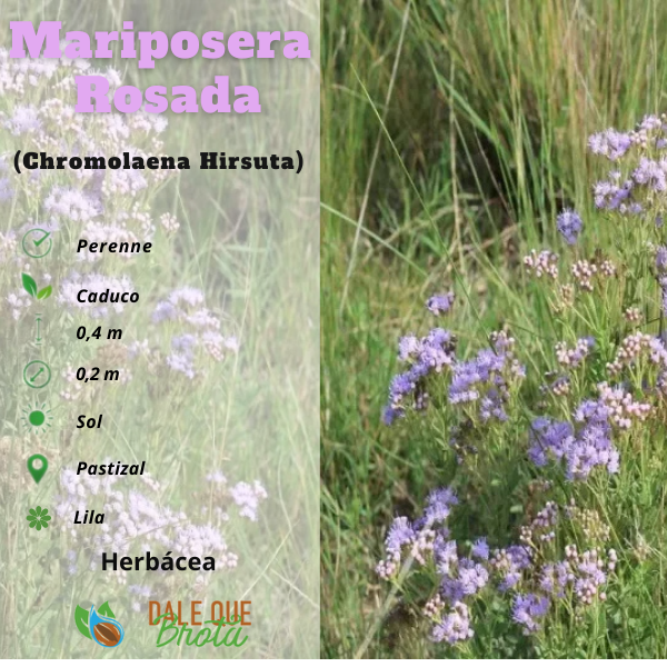 (Chromolaena hirsuta) Es un subarbusto. Durante los meses fríos muere la parte aérea y queda un pie leñoso del que rebrota la planta en primavera. Su floración es muy abundante y ornamental.